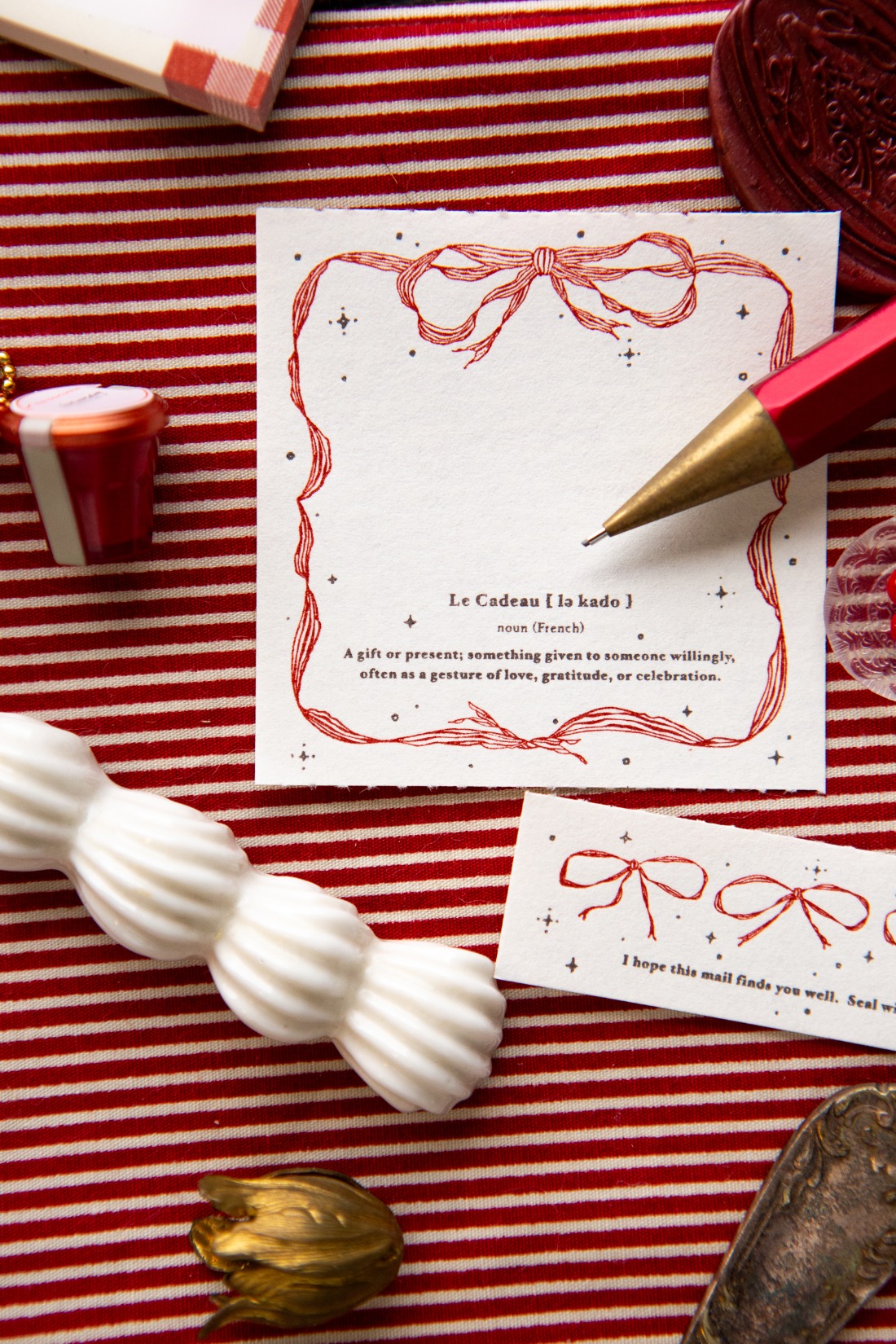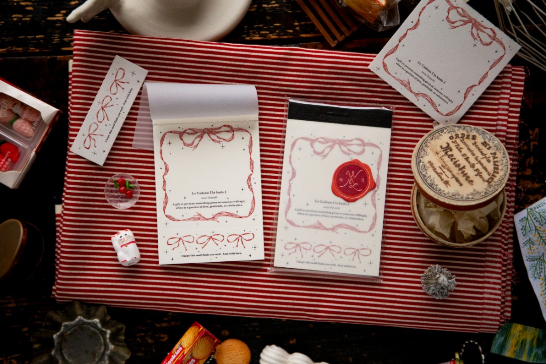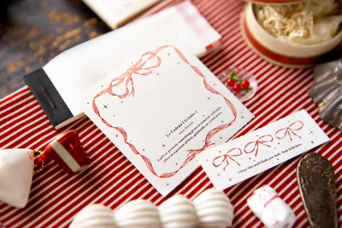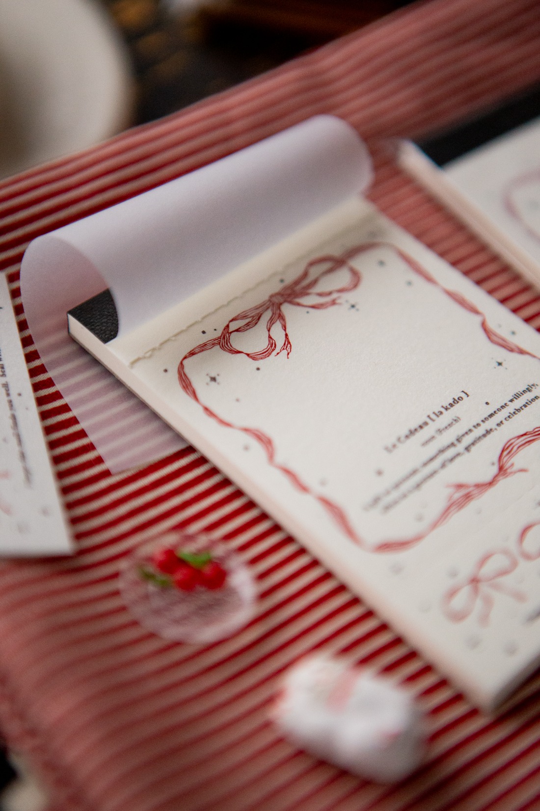 條紋緞帶綁的蝴蝶結,字典感覺的裝飾文字。